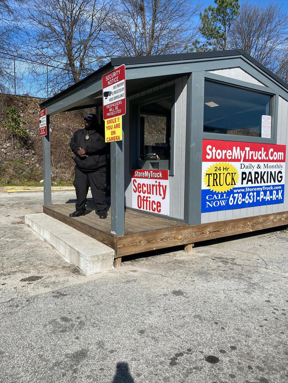 High Security Truck Parking, we offer you the most secure place to park in Atlanta. Our truck parking and repair lot is surrounded by 7,000 volt barbed wire fencing, has security guards patrolling 24/7, cameras recording around the clock and many other security features. Reserve your Atlanta truck parking with us today!